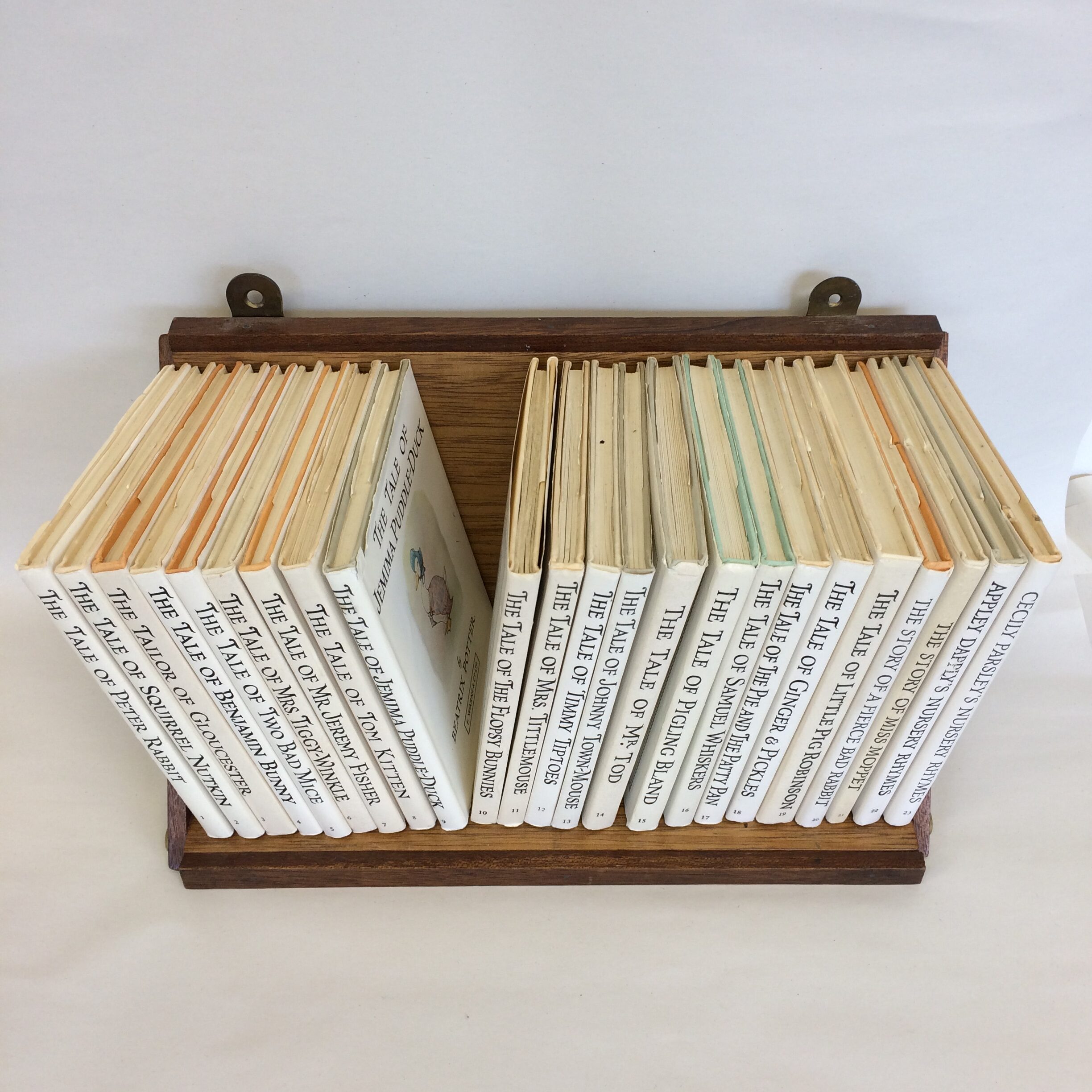 Beatrix Potter Book Set in wooden shelf